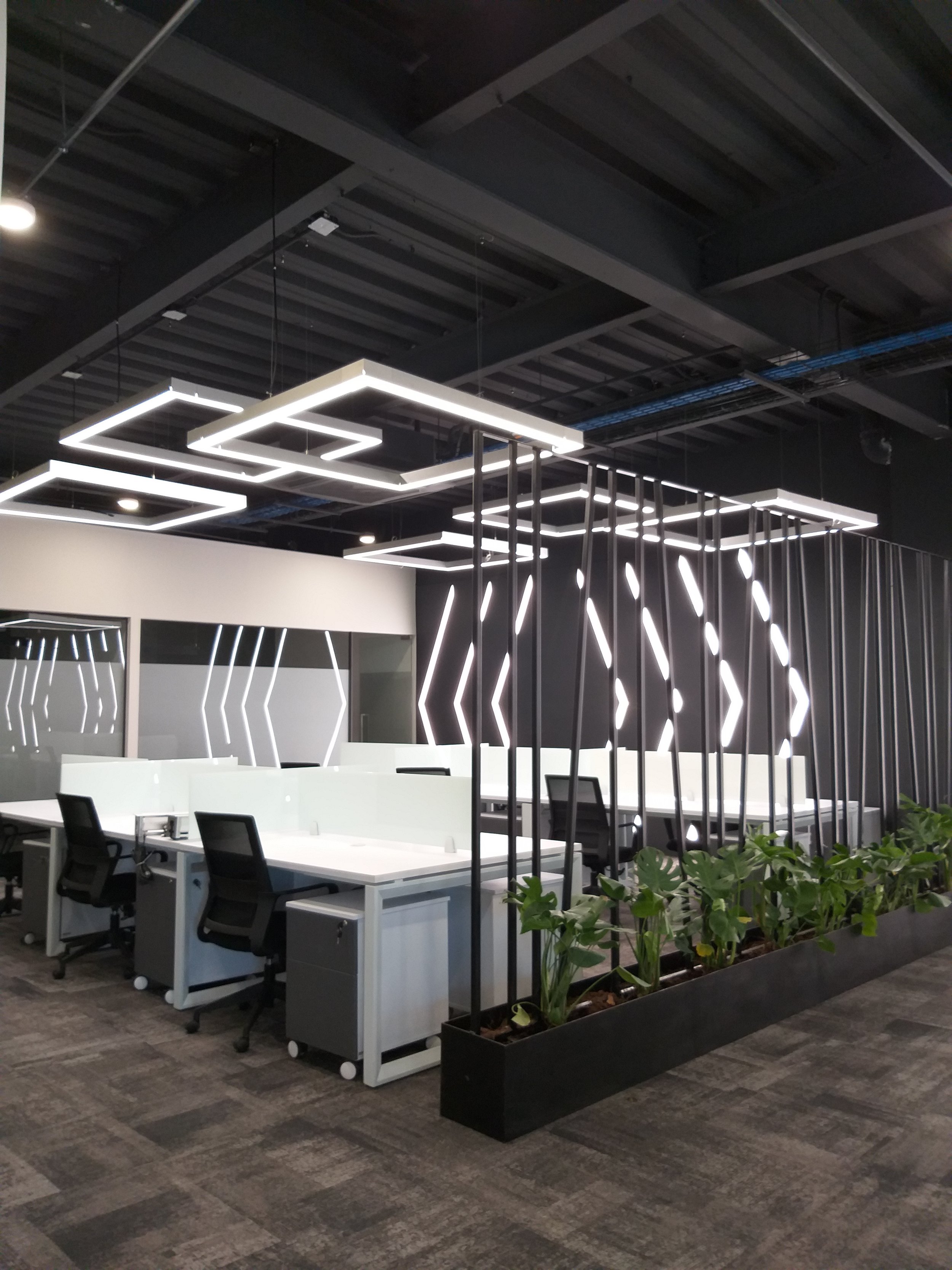 La luz natural se mezcla con sistemas de iluminación cuidadosamente diseñados, creando un ambiente dinámico y lleno de energía. Los espacios abiertos invitan a la colaboración, mientras las áreas privadas ofrecen calma para la reflexión y la estrategia.
